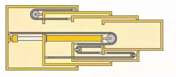 4、組合伸縮機構;當伸縮臂超過三節(jié)時,可以同時采用上列的任意兩種伸縮方式進行伸縮的機構。